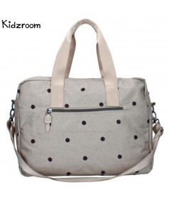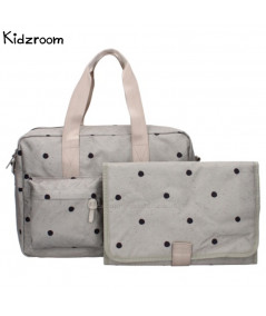 Uscire con un bambino? Allora dovete portare molto con voi. Un genitore non può fare a meno di una buona borsa fasciatoio. Questa borsa per pannolini beige a pois di Kidzroom contiene tutti i pannolini, i panni idrofili, i vestiti extra, i biberon, gli snack e i ciucci necessari per il vostro bambino in viaggio. La borsa è dotata di due spaziose tasche anteriori per gli oggetti da afferrare rapidamente. Inoltre, l'ampio scomparto principale è dotato di una doppia cerniera per un facile accesso. L'ampio scomparto è dotato di una cerniera per i piccoli oggetti e di diverse tasche con elastico per riporre facilmente le tazze. Sul retro della borsa per pannolini si trova un'altra cerniera per un ulteriore spazio di archiviazione.