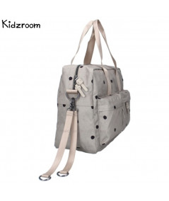 La borsa fasciatoio è dotata di un fasciatoio coordinato per cambiare il bambino ovunque e in qualsiasi momento. La borsa per pannolini può essere trasportata con le maniglie sulla parte superiore o a spalla grazie alla tracolla regolabile e staccabile. La borsa per pannolini è inoltre dotata di passanti per essere facilmente appesa alla carrozzina.